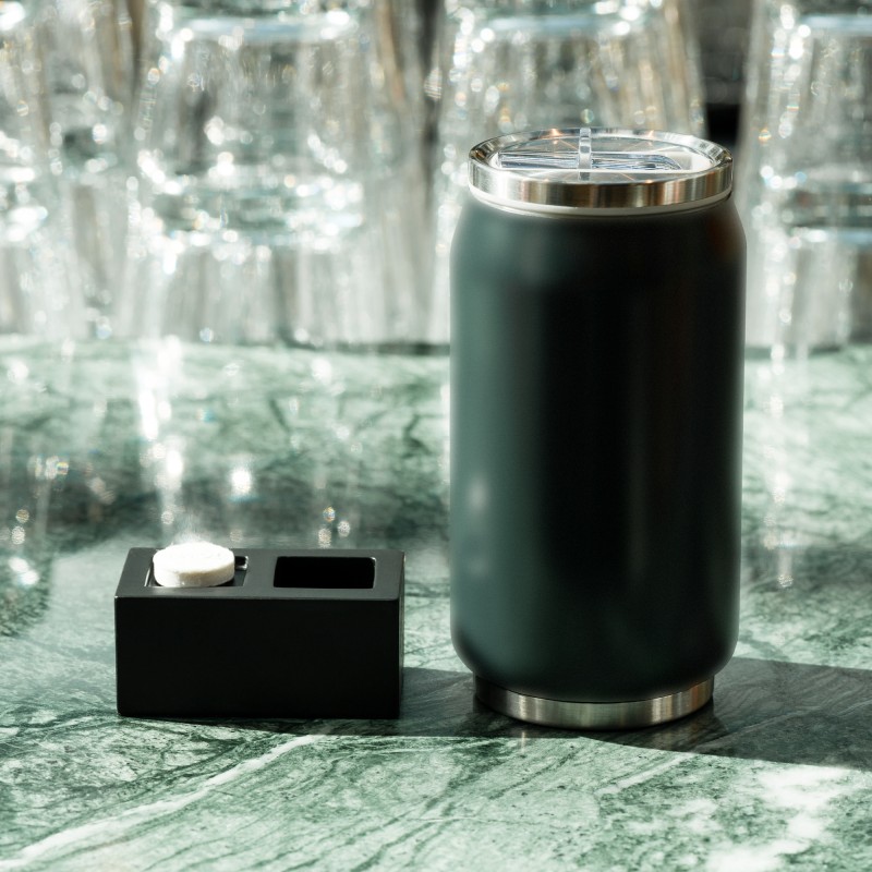 Bouteille design façon canette avec bec verseur rétractable. Cette bouteille isotherme vous permettra de garder l'eau chaude à la température désirée pendant tout le service. Sa contenance est de 33 cl.